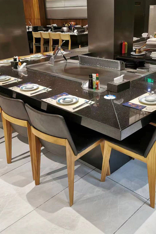 7 Kursi Baja Tahan Karat dan Baja Paduan Pemanas Induksi Bentuk Persegi Panjang Meja Pemanggang Teppanyaki Elektrik